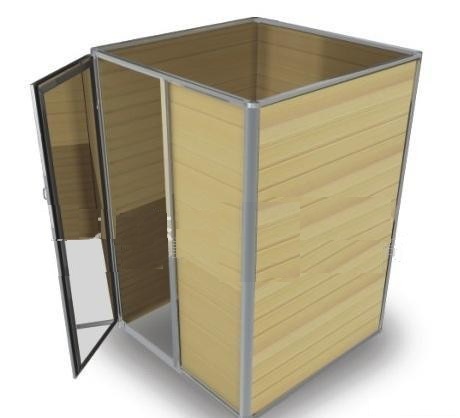闲话少说,请看题:铝合金框架,三面胶合板面板,正面有手拉门,上下两面无板露空,内设镜子,但不含任何数码设备。